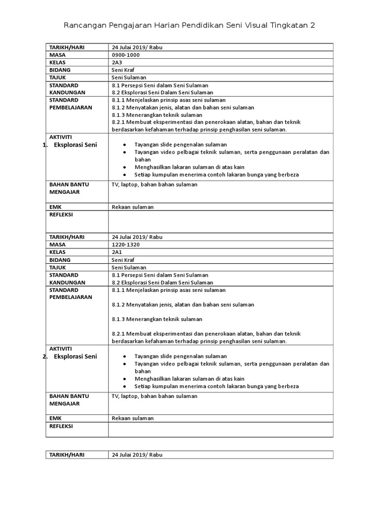 Sulam Penuh Pendidikan Seni Visual Tingkatan 2