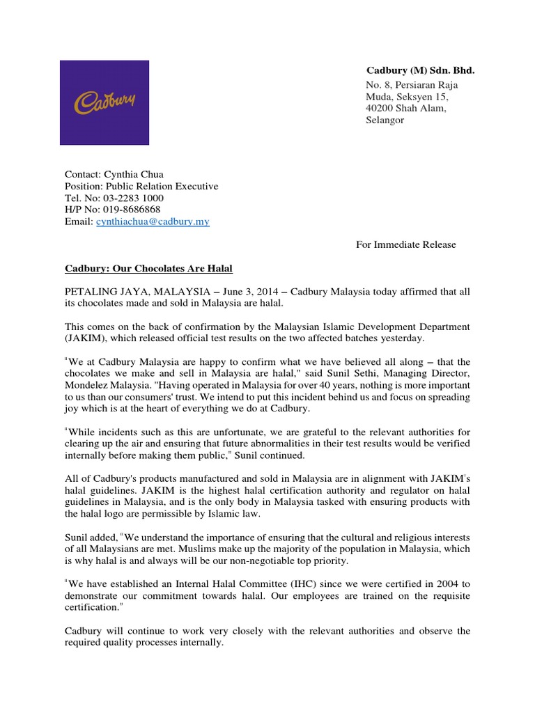 Press Release Cadbury Malaysia Chocolate