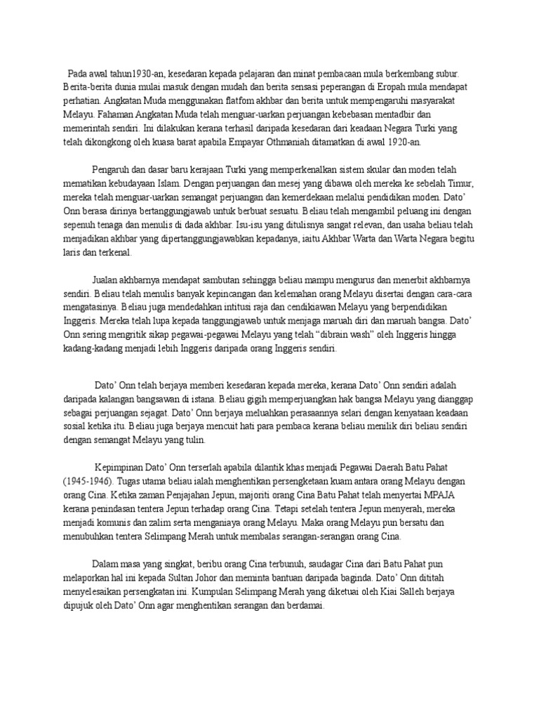 Doc Bincangkan Sumbangan Dato Onn Jaafar Dalam Memansuhkan Malayan Union Di Tanah Melayu Dari Tahun 1946 Hingga 1957 Docx Muhammad Amirul Academia Edu